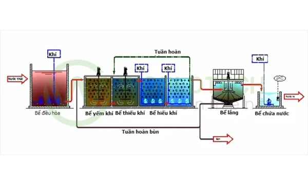 - Giai đoạn O (Oxic): Vi sinh vật hiếu khí phân hủy các chất hữu cơ còn lại trong nước thải.